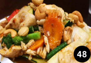 Chilli, garlic, vegetable and roasted cashew nuts topped with crispy basil